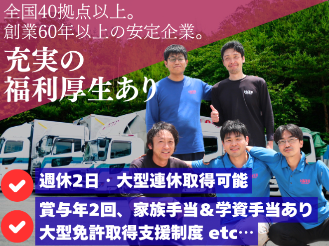 \近場配送でプライベートもしっかり取れる!各種資格取得支援や福利厚生も充実してます◎/